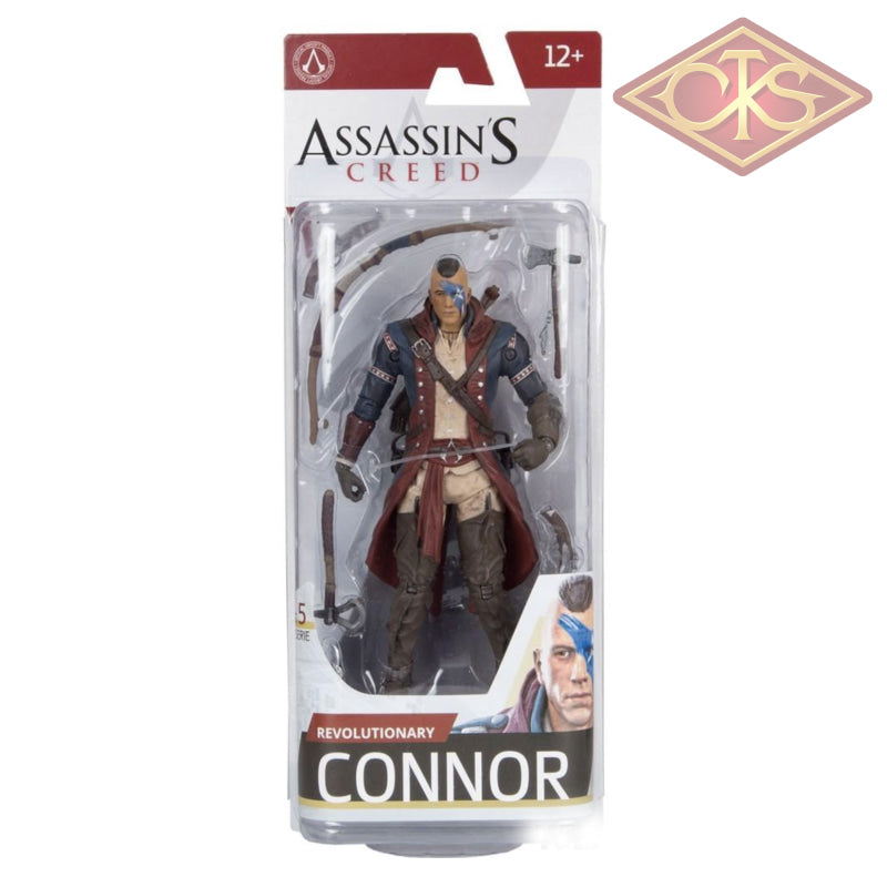 Sewn and stitched in the colors of Old Glory, Revolutionary Connor stands proud as he takes a stand against the Templars in colonial America! With red and blue face-paint, Connor comes armed with two different styles of tomahawks, extended hidden blade, two pistols and hunting bow!