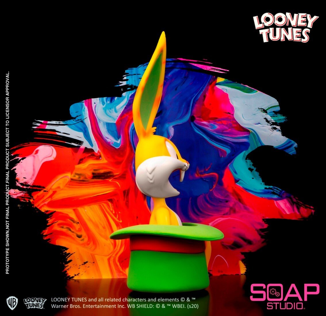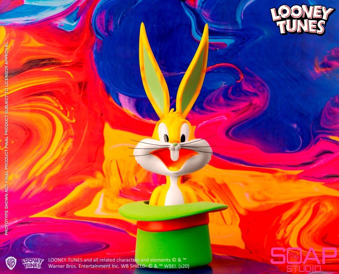 Pop art has always been characterized by bold trendy and vibrant colors, so what will happen when we combine it with Bugs Bunny--one of the greatest cartoon icons? After the popular welcome for the Bugs Bunny Tophat Bust, Soap Studio proudly presents you with an eye-popping colorway look! A bold collision of orange and green brings out a strong visual sense. The flocked Tophat is extremely textured, and the same color-changed sunglasses are much trendier.
